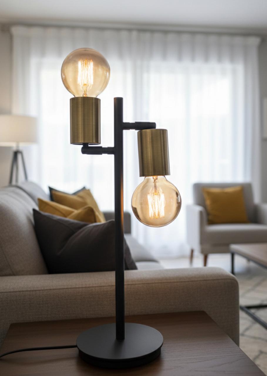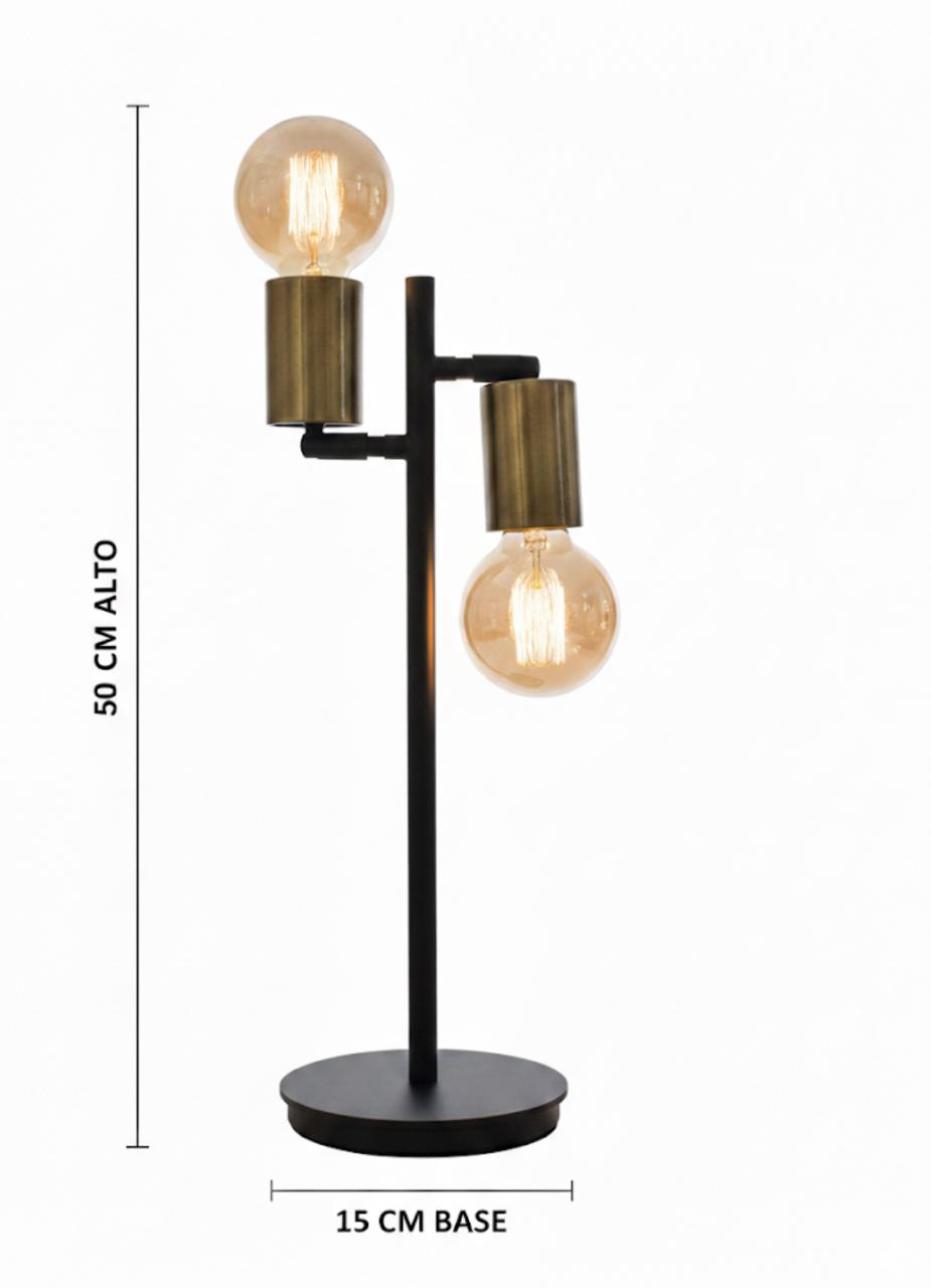 - Lámpara de mesa en hierro con pintura negra por 2 luces.
